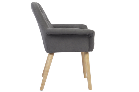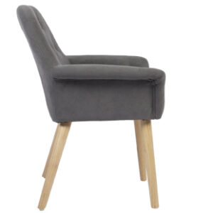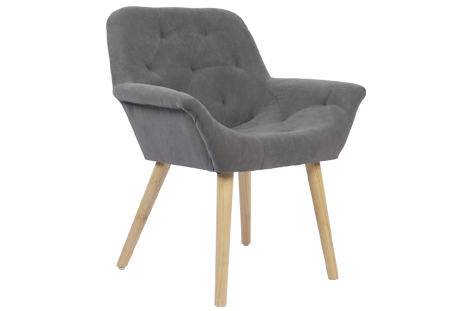 Silla de comedor tapizada con patas de madera.