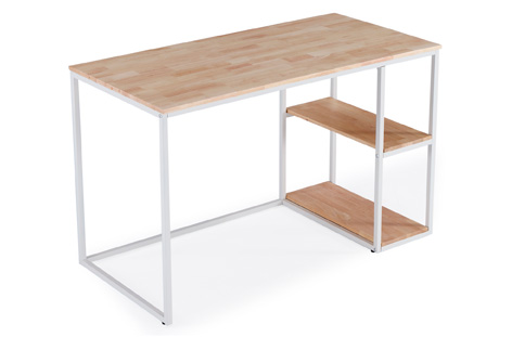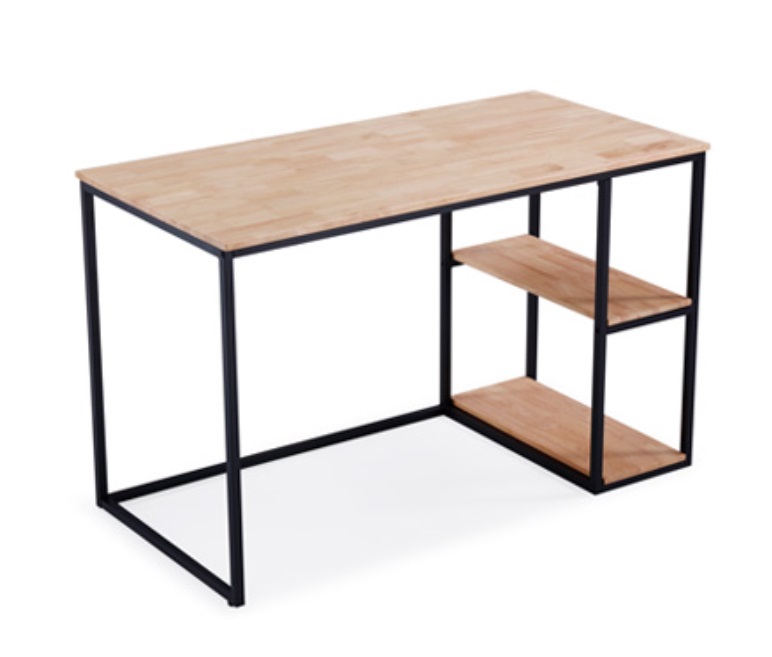 Mesa de trabajo con tapa en madera de roble y estructura metálica.