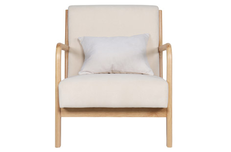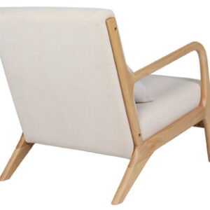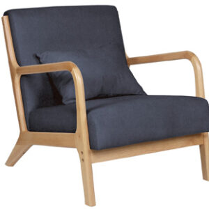Estructura de madera maciza con asiento y respaldo tapizado.