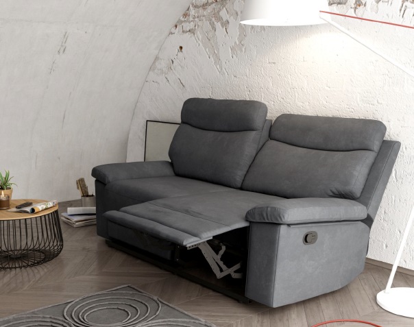 Comodísimo sofá relax con asiento de muelles ensacados y respaldo de fibra hueca virgen siliconada de primera calidad.